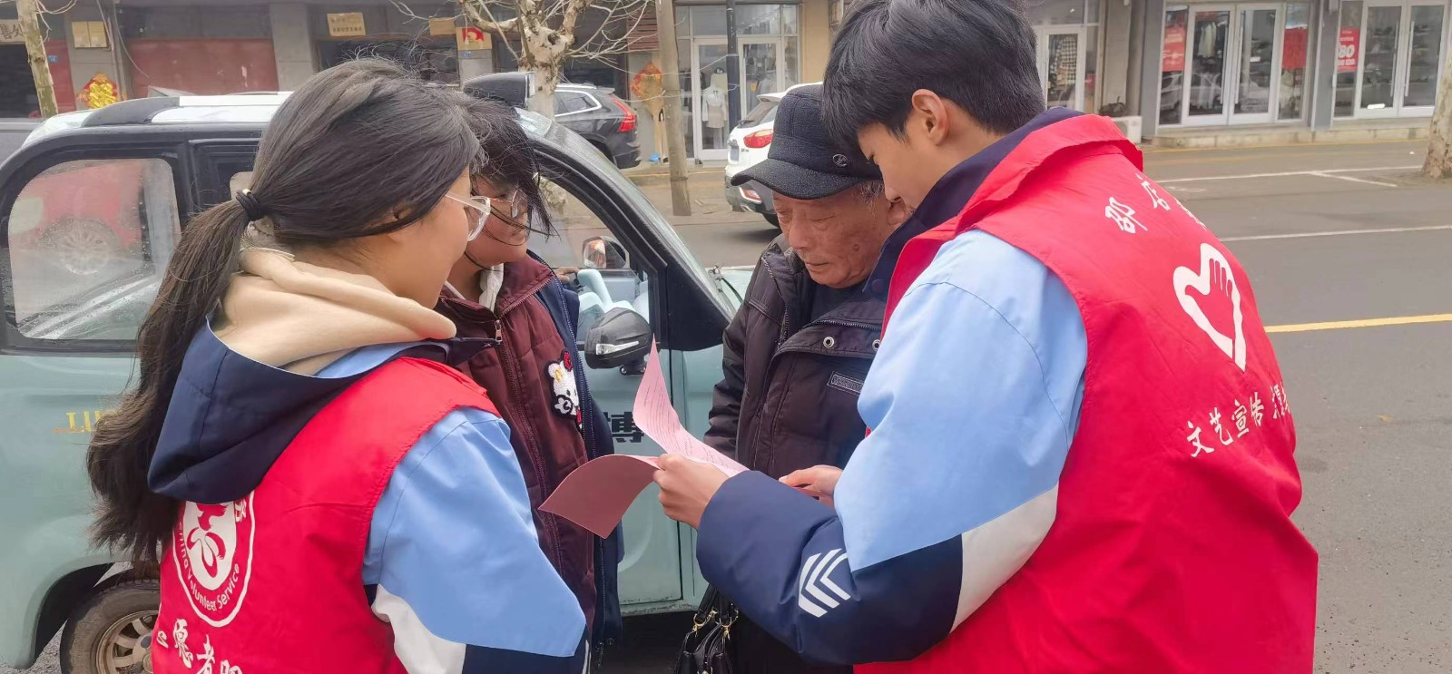 下午1点,志愿者们准时集合,身穿红色的志愿者马甲,在邵店中学团委的带领下,精神抖擞地踏上了宣传之旅。他们携带了学校印制的消防安全宣传册和宣传品,准备向沿街商铺的经营者和过往的行人普及消防安全知识。